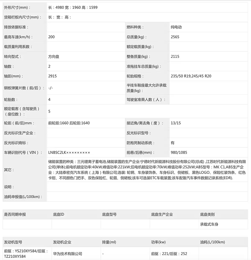 近日,极狐阿尔法S6四驱版申报信息公布。新车定位中大型轿车。