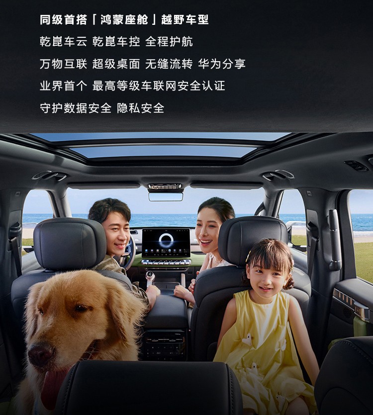 动力方面,新车搭载1.5T插混,综合功率505kW,综合扭矩848N·m。新CLTC综合续航可达1365km。并且还配备三把锁,具备低速越野辅助+越野专家模式。
