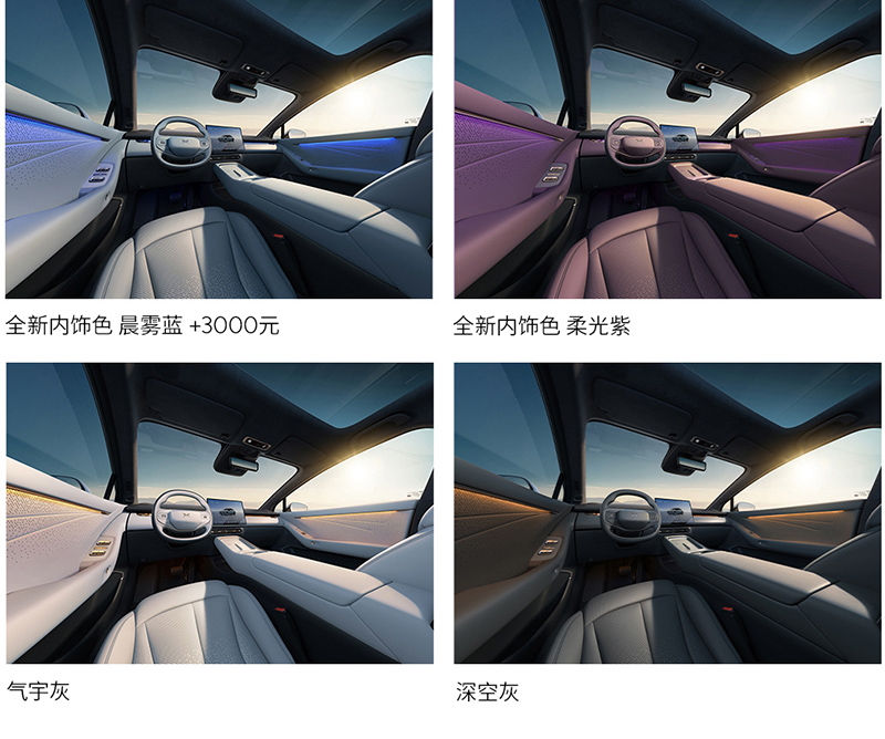 内饰方面,新车继续提供大尺寸中控屏,升级8.8英寸仪表搭配19英寸HUD抬头显示。对整车座椅进行升级,新增副驾零重力座椅,前后排按摩通风升级。另外新车还搭载第二代VLA大模型,首搭天玑AIOS 6.0。新车增加柔光紫及晨雾蓝内饰配色。