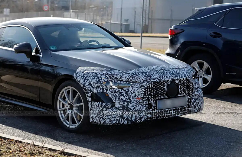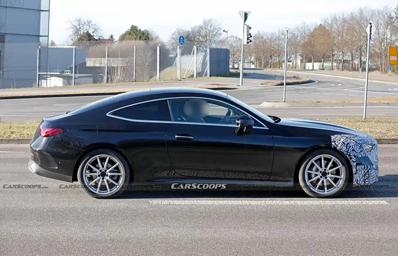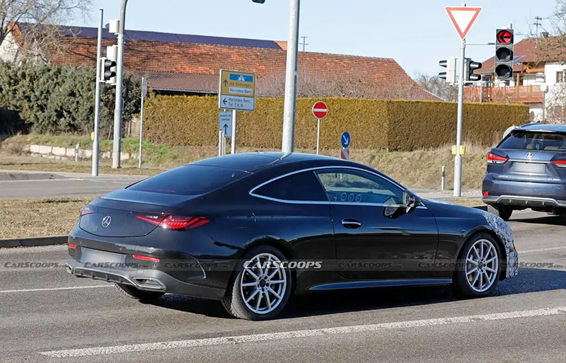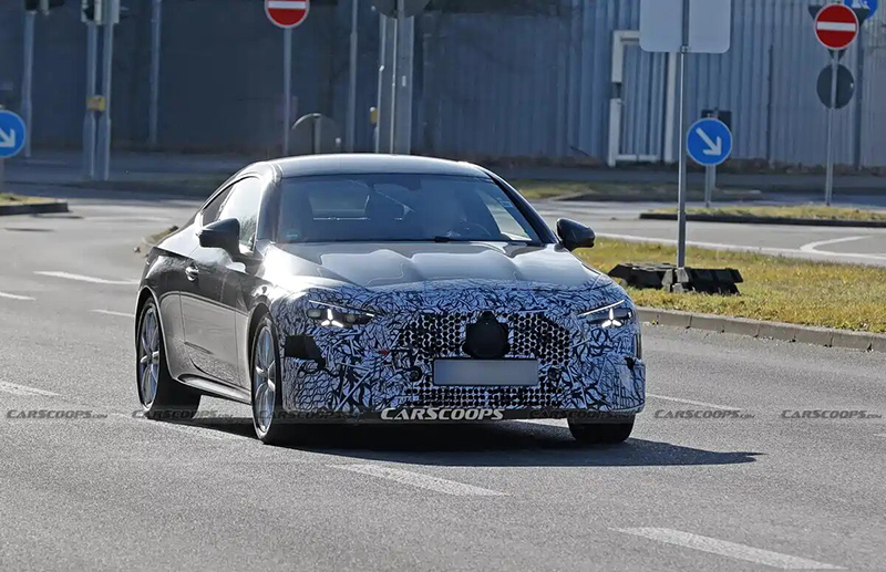外观方面,预计这款轿跑车将紧随改款奔驰C级的步伐,前灯组换为目前家族最新的三叉星辉造型。同时,新车的格栅和前包围造型也会有所微调,不过目前车辆覆盖着厚重的伪装材质,还很难辨认。车身侧面和尾部没有变化,依旧是流畅的线条配合优雅的溜背造型,贯穿式尾灯搭配下方的双边排气布局。