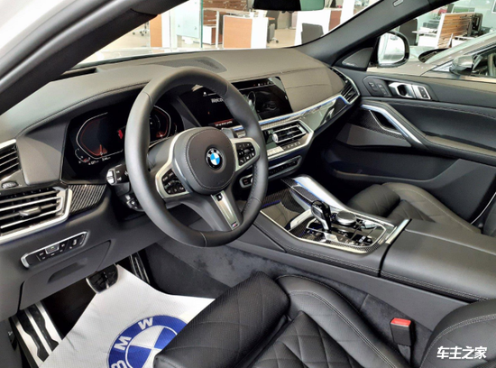 就内饰整体而言,宝马X6更强悍。三幅式的方向盘的造型运动感充盈,操作灵活,还可选配加热功能。中控采用塑料,皮质,金属材质,用料和做工看起来中规中矩,配备一块12.3英寸触控屏,显示清晰且设计也比较奢华,前排还配备有双温区自动空调控制系统,自由调试最舒适的空间氛围。软包材质的座椅宽大,乘坐空间尚可,满足日常家用