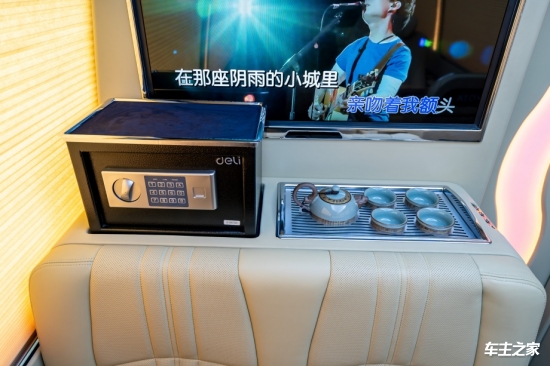 茶台的加入,则让考斯特 12 座更具商务接待氛围与生活情趣。在出行途中,商务人士可以围坐在茶台旁,煮水泡茶,进行轻松的商务洽谈;休闲时刻,也能泡上一杯香茗,享受惬意时光。茶台通常配备有齐全的茶具收纳空间,以及便捷的上水、排水系统,操作简单便捷,为乘客带来优质的品茶体验。