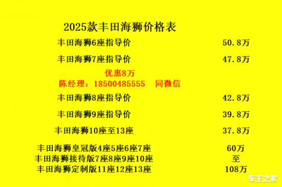 丰田海狮:多元座驾,畅享非凡出行 丰田海狮总部电话:18500485555 ,联系店长(陈经理)