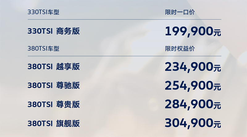 动力方面,新车继续搭载不同功率的2.0T发动机,最大功率分别为137kW、162kW,峰值扭矩分别为320N▪m、350N▪m。传动匹配7速双离合变速箱。
