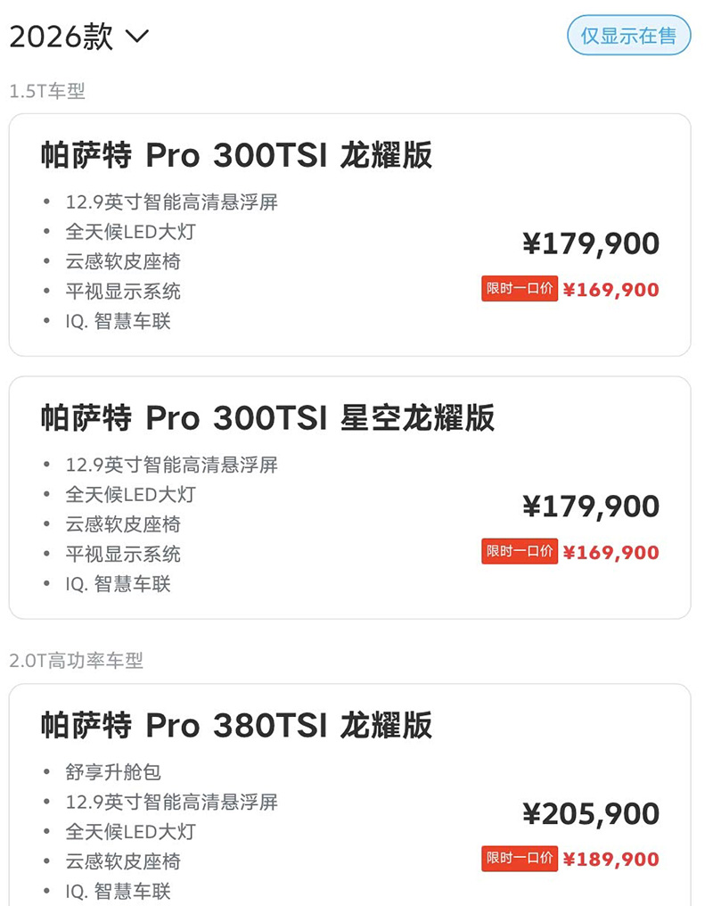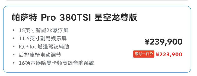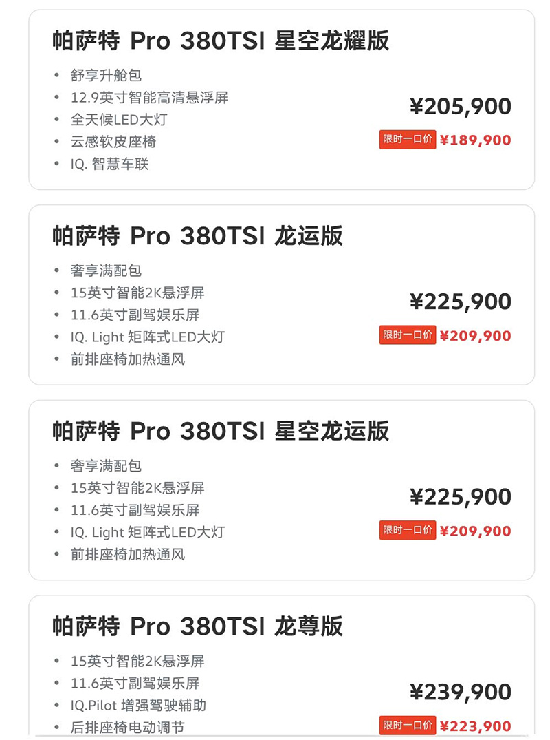 日前,上汽大众新款帕萨特Pro正式上市,共推出8款车型,限时一口价16.99-22.39万。