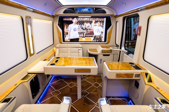 在商务场景中,这里秒变机密会议室,有效隔绝外界干扰,保障商业洽谈的安全性与私密性;降下隔断,车内即刻恢复通透开阔,方便团队成员自由交流。长条形广告屏镶嵌于隔断之上,可实时展示企业形象、产品信息与动态广告,无论是穿梭于繁华都市,还是行驶在高速公路,都能随时随地传递品牌魅力,成为移动的宣传利器。