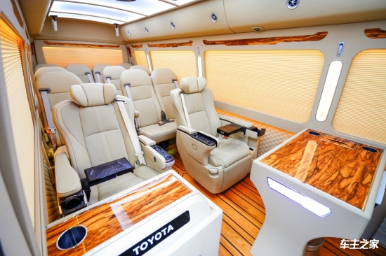 从外观上看,16 座丰田考斯特延续经典大气的设计风格,硬朗流畅的车身线条勾勒出沉稳威严的轮廓。标志性的镀铬前脸与犀利的大灯组相互辉映,彰显品牌辨识度的同时,透露出与生俱来的商务气质。无论是穿梭于繁华都市的主干道,还是停靠在高端商务会议、大型展会现场,大气稳重的车身都能瞬间吸引目光,成为企业实力与身份的象征。拉开车门,脚下的菱形地板率先映入眼帘,成为车内空间的视觉焦点。菱形地板采用高品质材料精心打造,表面经过特殊工艺处理,不仅耐磨防滑、易于清洁,其独特的几何纹路设计,更赋予车内空间强烈的现代感与艺术气息。