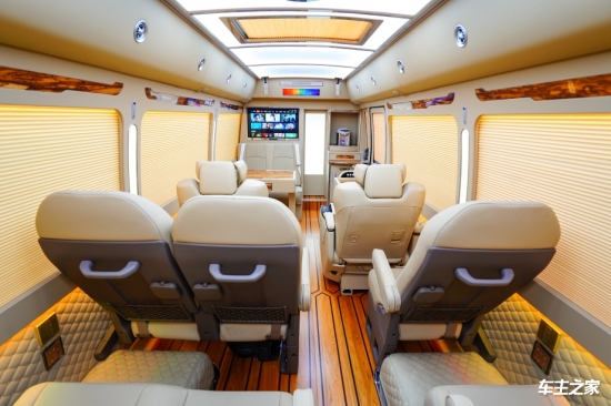 当处于透明状态时,车内空间通透开阔,前后排沟通无阻,便于团队成员交流互动;当切换至雾化状态,玻璃瞬间变得模糊,隔绝外界视线,为商务机密洽谈、重要文件处理或个人休憩提供安全私密的环境。雾化玻璃隔断不仅提升了车内的科技感,更极大地增强了空间使用的灵活性。除了特色配置,车内的座椅同样注重舒适与品质。