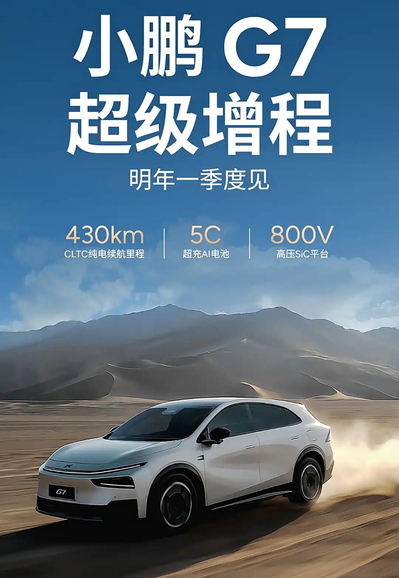 近日,小鹏G7增程版续航信息公布。新车将2026年一季度发布。