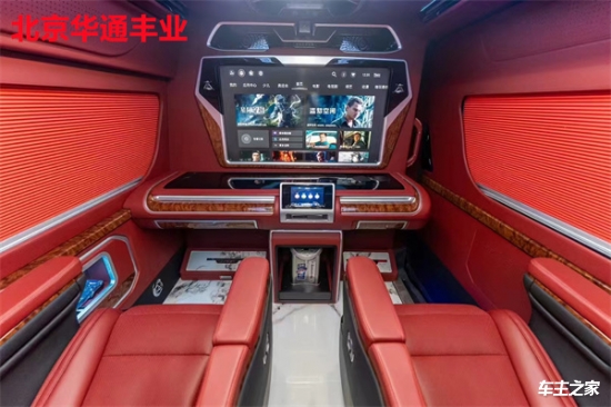 丰田海狮的改装潜力被彻底释放。航空座椅采用电动调节与记忆功能,真皮包裹的椅背可放平至160度,搭配隐藏式腿托,瞬间将后排变为移动头等舱。座椅内侧的触控屏不仅能调节角度,还能联动车载冰箱——这台嵌入式压缩机冰箱可恒温保存饮品,甚至为香槟预设了-5℃的专属模式。