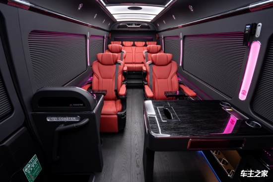 丰田考斯特12座黑红双拼内饰车型,以极致的色彩碰撞与工艺细节,重新定义高端商务出行的美学标杆。其核心配置围绕“尊贵体验”与“智能场景”展开,融合航空级舒适性与定制化功能,打造移动的私密商务空间。