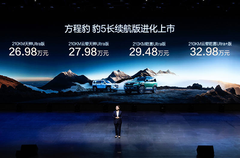 近日,方程豹豹5长续航版上市,共推出4款车型,售价区间为26.98-32.98万。