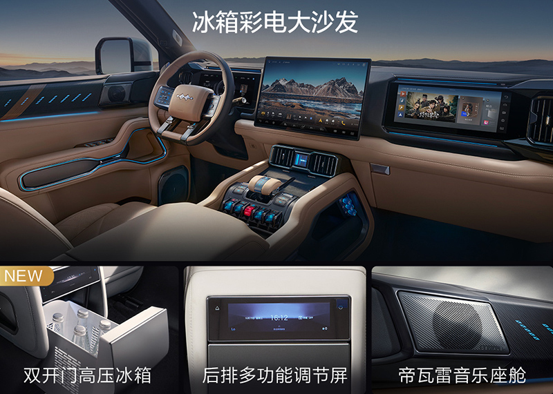 内饰方面,新车提供17.3英寸悬浮式中控屏+12.3英寸副驾娱乐屏及12.3英寸液晶仪表。新车将内置DiLink 150系统,配备BYD 9000芯片,支持AI大模型。全系标配乾崑智驾ADS 4.0系统。新车还增加了雪隐灰内饰配色,另外增加了双开门高压冰箱及副驾/后排多向大腿托。