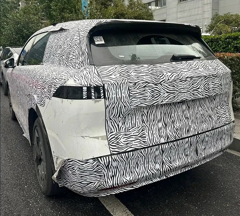 车身侧面,新车整体尺寸很大,预计新车可能会是一款大五座SUV,拥有超长的轴距,预计可以放下更大的电池包,从而保证续航里程,新车也采用隐藏式门把手。车辆尾部,新车依旧采用贯穿式尾灯样式,整体仍然是简洁化的风格。