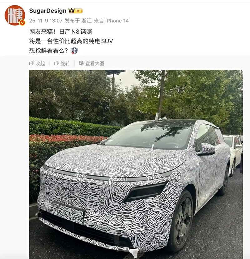 外观方面,日产N8采用了与N7近似的家族化设计,贯穿式日行灯和分体式车灯设计,只是下部的车头设计样式与N7有差异,但依然会是回旋镖造型。整个前脸相当厚实,车顶还会配备激光雷达,预计继续采用Momenta方案。