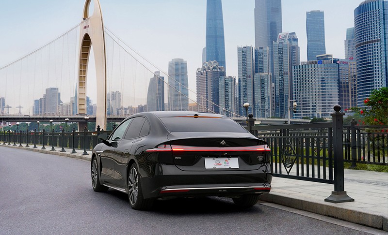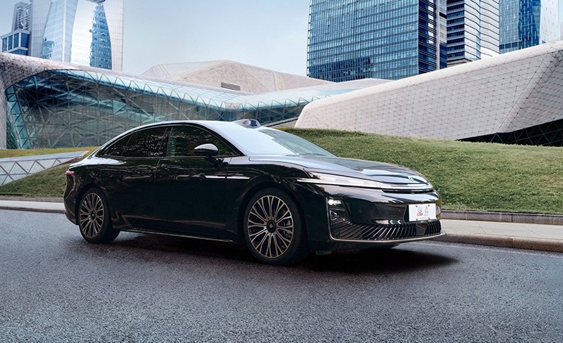 外观方面,新车采用分体式大灯设计,并搭配贯穿式灯带,车头车尾均加入小蓝灯。前包围贯穿式通风口和两侧灯组衔接组成U字型设计。另外车顶还配备了激光雷达。车尾尾灯采用三条贯穿式灯带组成,增加层次感。另外还配有小鸭尾设计。车身尺寸方面,新车长宽高分别为5130*1966*1500(1492)mm,轴距3020mm。