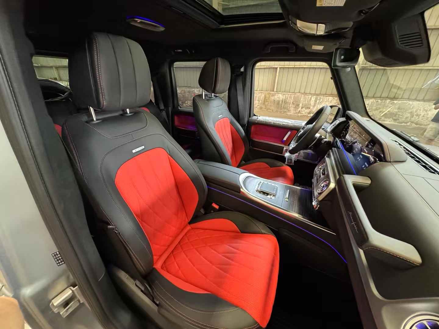 奔驰G63车内用料以真皮为主,部分碳纤维及铝合金装饰件。如今的G级是纯粹的豪华车了,跟那些纯粹越野车不一样的,车内配置很高,像这个座椅除了各种电动调节功能外,还带有腰托、腿托以及加热、通风、记忆功能。