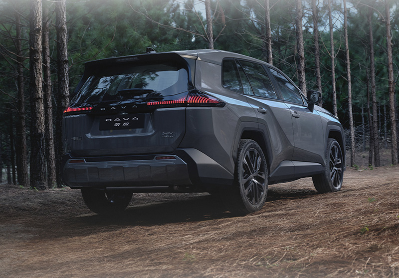 外观方面,新车延续了海外版造型,大尺寸中网搭配C字型大灯组,颇具机甲风。车侧提供18英寸及20英寸轮毂可选。车尾主要更新了全新尾灯,中间LOGO改为RAV4。车身尺寸方面,新车长宽高分别为4620*1855*1680mm,轴距2690mm。