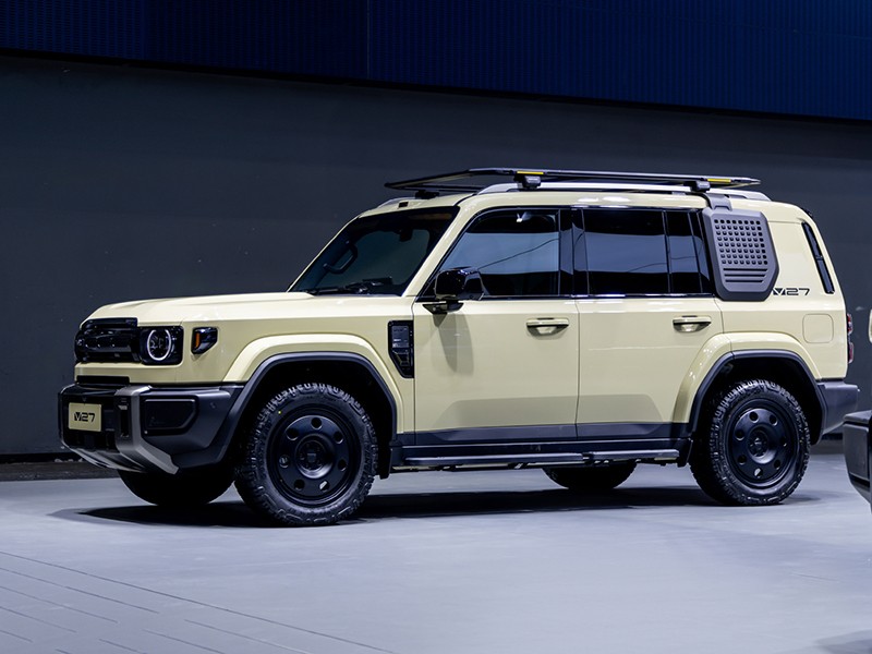 外观方面,新车采用和iCAR V23类似风格,前格栅重新设计,两侧搭配外方内圆大灯组。并搭配越野风格前包围,车侧提供黑化轮毂。车屁股比V23长出一大截,预计车内空间有大幅度提升。车尾尾灯为双方型尾灯竖状排列,并且还配备了外挂式小书包,小书包上的灯源还可点亮,车顶还有两块天幕颇为个性。车身尺寸方面,新车长宽高分别为1909(5045)*1976*1855(1894)mm,轴距2910mm。