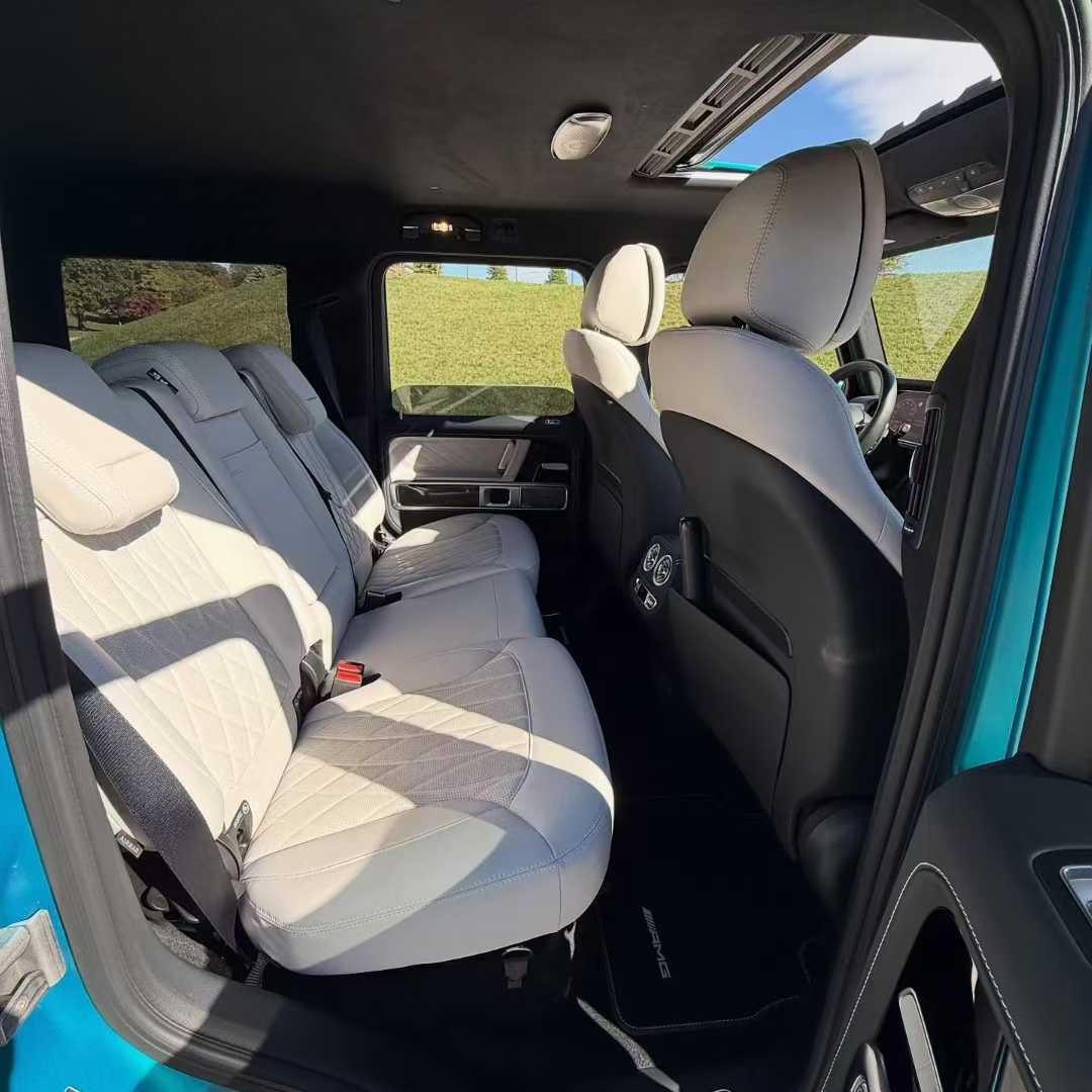 2024款奔驰G63汽油车内采用深色调与桃木装饰,黑色真皮运动座椅非常舒适,方向盘以高档真皮包裹装饰,触感极其细腻。配有桃木装饰的操控台,稳重大气,同时提高了整体的质感。各种功能按钮应有尽有,丝毫不次于豪华轿车的功能。2024款奔驰G63经过全新改款造相比老车型,全新奔驰G级车长增加53mm,宽度增加121mm,尺寸上的增加将会优化车内空间表现。涉水深度达到700mm比过往增加100mm。接近角31°