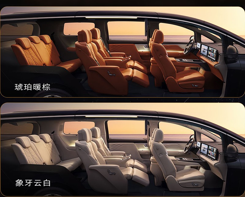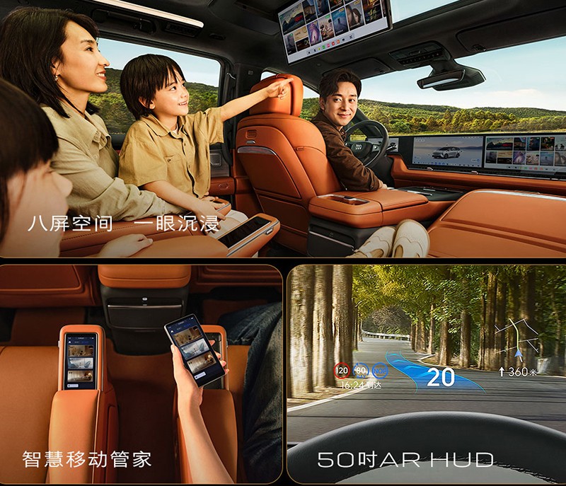 内饰方面,新车采用10.25英寸仪表+16.3英寸中控屏+16.3英寸副驾娱乐屏组成的联屏设计,后排还有吸顶屏。第二排提供独立座椅,还搭配两个触控屏可调节座椅、空调、冰箱等。新车将搭载全新“逍遥智行”高阶辅助驾驶,支持“无断点”城市NOA领航、全车位泊车辅助等。