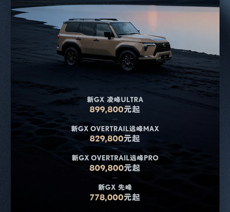 近日,新款雷克萨斯GX正式上市,共推出4款车型,售价区间为77.80-89.98万。