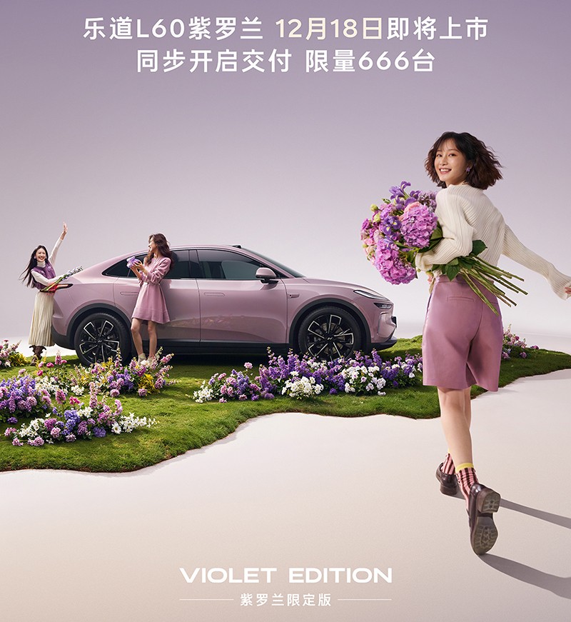 官方公布,乐道L60紫罗兰版将12月18日上市,限量666台。
