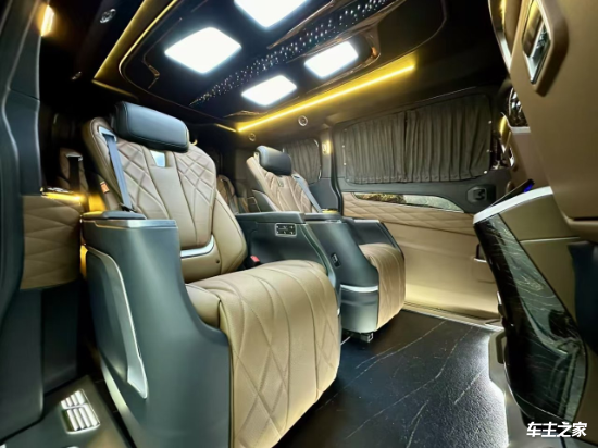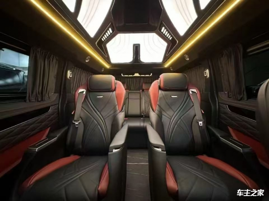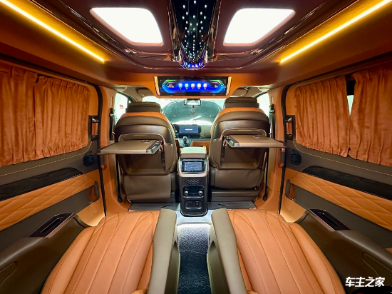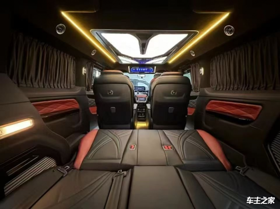 26款全新福特黑武士第三排座椅同样可电动调节,还贴心地配有无线充电功能,并且能一键放倒成沙发床,沙发床可以180度的进行放平平躺,车里面困了累了都能够正常的休息一下,轻轻松松。除此之外,整车的顶部用的是高达的顶灯,非常的明亮,共有三款颜色可以任意地进行调节,编织纹的一个地板好看耐磨好打理。