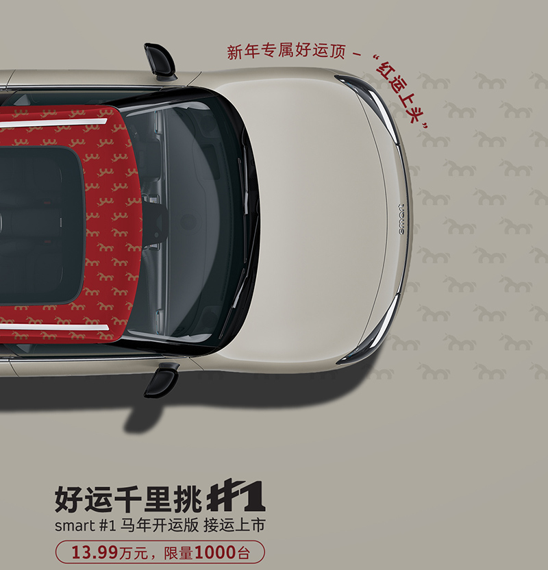 近日,smart精灵#1马年开运版上市,售价13.99万起,限量1000台。