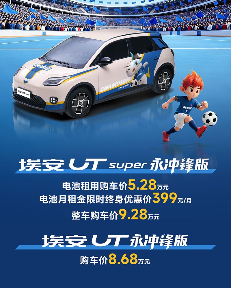 近日,广汽埃安UT系列永冲锋版上市,共推出2款车型,售价区间为8.68-9.28万。