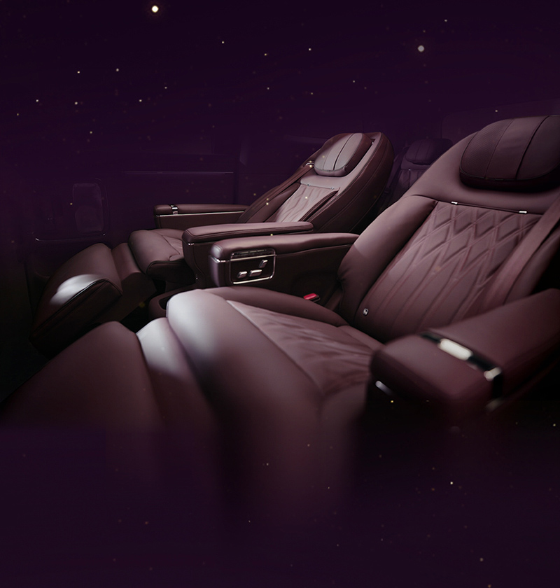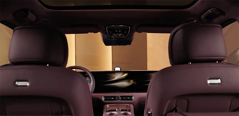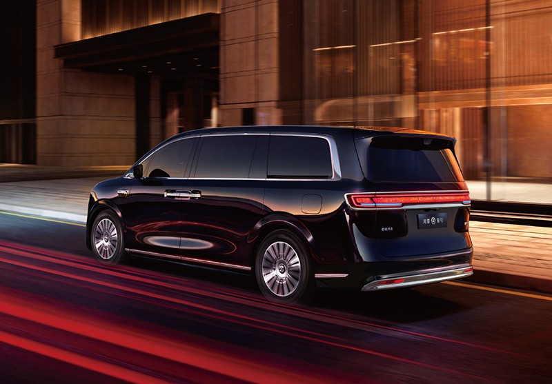 内饰方面,新车配备绒霞紫内饰,采用三联屏搭配三辐式方向盘,车内搭配实木饰板,中央通道还配备了水晶旋钮。新车二排旋转座椅支持45度迎宾、90度观景和180度对坐模式,还配备了腿托。另外从官图能看到二排有上下车扶手。据悉还提供车载氧吧、车载冰箱及最新鸿蒙座舱。