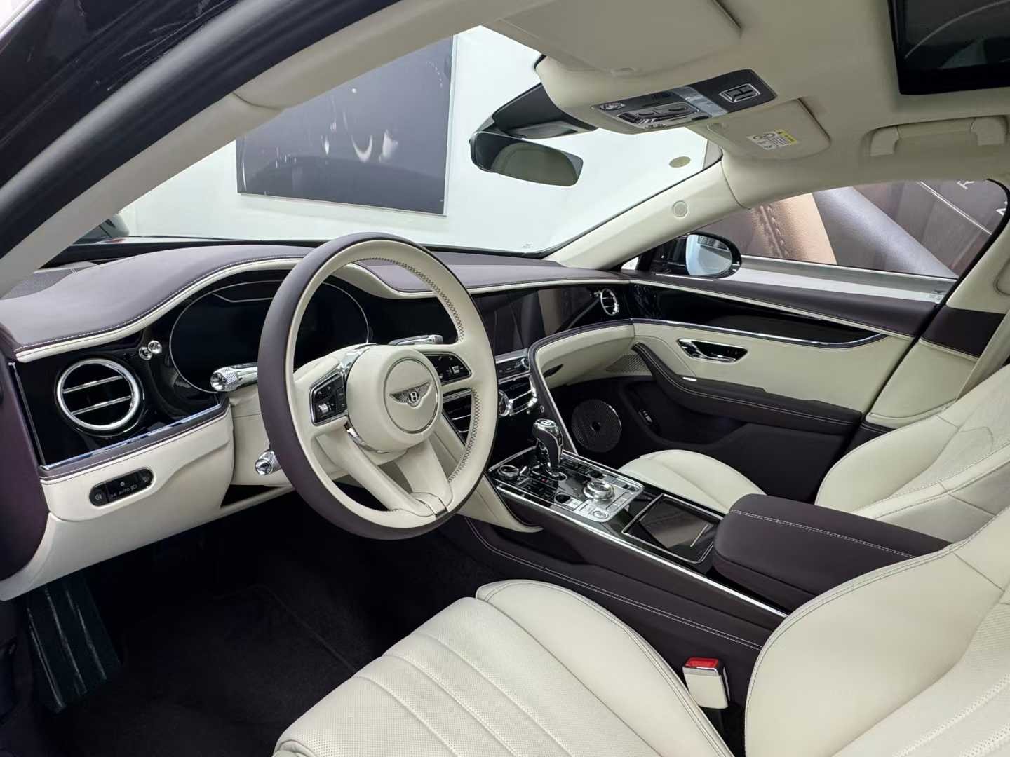 2024款宾利飞驰中控台造型更偏复古,而用料则是这台车最大的亮点。中控台大面积的胡桃木饰板仿佛玉石一般润泽,让人非常舒心。三幅式方向盘由胡桃木与真皮组成,握感相当棒。仪表盘内使用了大量的镀铬边框,表盘设计较为复古。推拉式的空调出风口,开闭之间的阻尼适中,手感很棒,精致的镀铬工艺及造型更是让人欲罢不能。