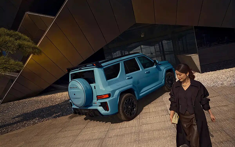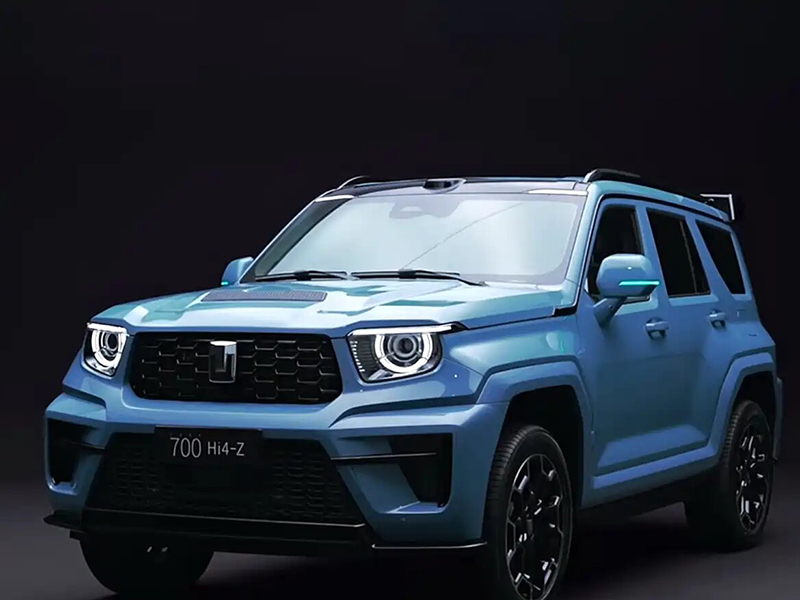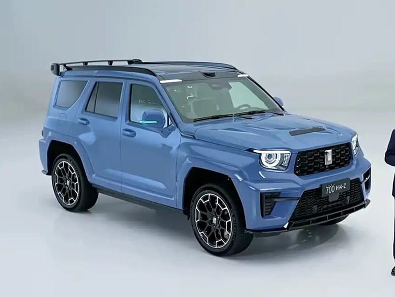 外观方面,新车延续家族设计,前脸采用上下格栅搭配标志性圆形大灯组,大灯组还配了灯眉,机舱盖上还做了通风口设计。另外车顶还配备了激光雷达。在车尾还配备了外挂式备胎及大尺寸扰流板。车身尺寸方面,新车长宽高分别为5105*2061*1985mm,轴距为3000mm。