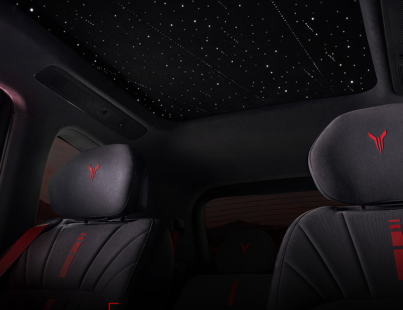 外观方面,新车在现款的基础上增加了黑化套件,依旧是标志性直瀑式中网,饰条做了黑化处理。车顶还配备了首款896线激光雷达。车身同样做了黑化处理,并采用黑化轮毂搭配红色卡钳。车身尺寸方面,参考现款长宽高分别为5230*2025*1817mm,轴距3120mm。