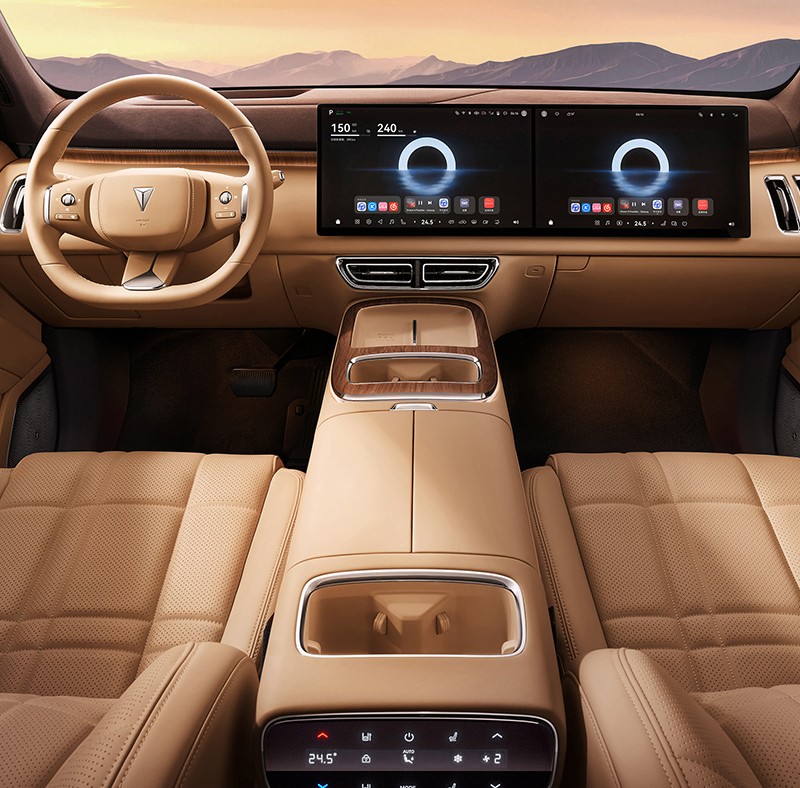 内饰方面,新车采用双15.6英寸中控+副驾联屏及43英寸AR-HUD,后排还提供21.4英寸娱乐屏,并搭载HarmonySpace 5鸿蒙座舱。新车标配华为乾崑ADS 4。