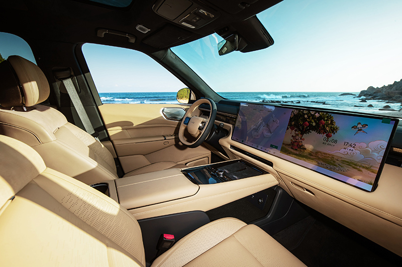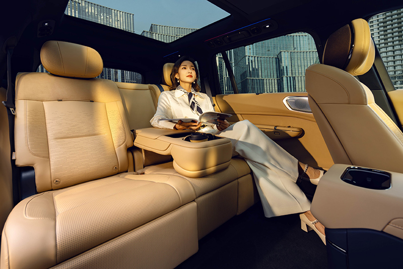 内饰方面,新车配备了30英寸双联屏搭配12.66英寸仪表,内置高通骁龙8295芯片,集成LYNK Flyme Auto车机。新车采用五座布局,后排均配备了腿托,中间还有可收起扶手。