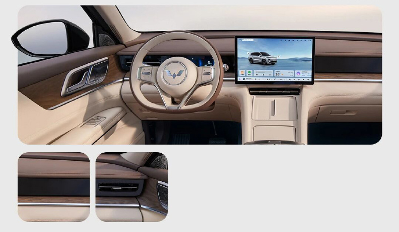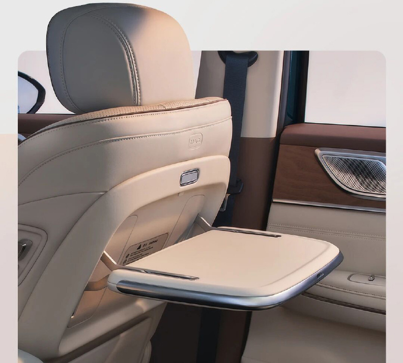 内饰方面,新车采用15..6英寸中控屏搭配8.8英寸液晶仪表,还提供氛围灯、手机无线充电等配置。副驾还有老板键,中排配备了小桌板。