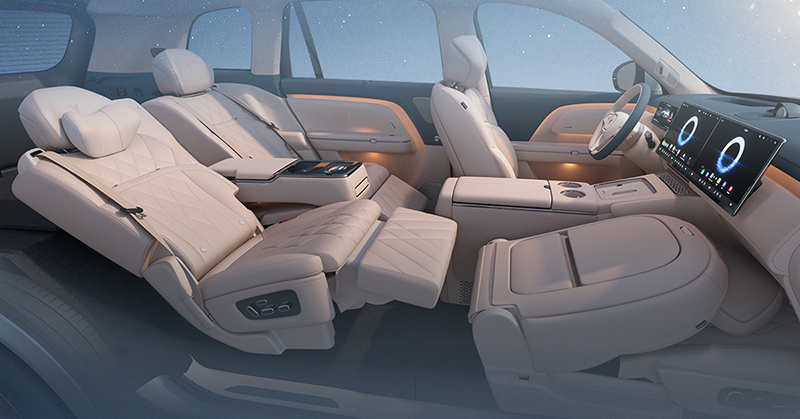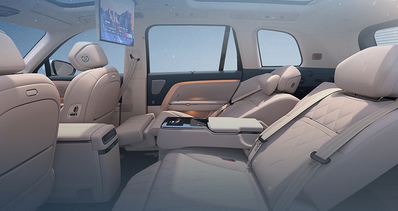 内饰方面,新车将首搭鸿蒙座舱HarmonySpace 5.0,首搭华为双15.6英寸双联屏搭配液晶仪表。后排还提供吸顶屏,后排座椅提供腿托等功能,新车还提供全自动一键成床功能。新车将搭载华为乾崑智驾ADS,支持高速领航、城市NOA等。