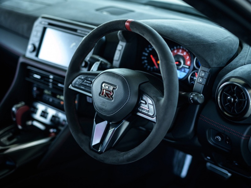 2023款日产尼桑GTR内饰方面,新车依旧采用了经典的机械指针式仪表盘,转速表采用富有激情的红底设计,搭配三辐式多功能方向盘、可显示具体行车参数的中控多媒体显示屏、三连“R”驾驶模式选择、红黑撞色的座椅配色,整体搭配让新车的战斗风味依旧十足。